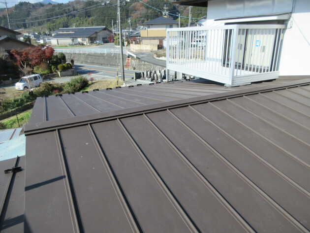 施工後は、屋根全体が落ち着いたブラウンカラーの美しい仕上がりになりました。 見た目が新築のように生まれ変わり、耐久性も大幅に向上しています。 |
