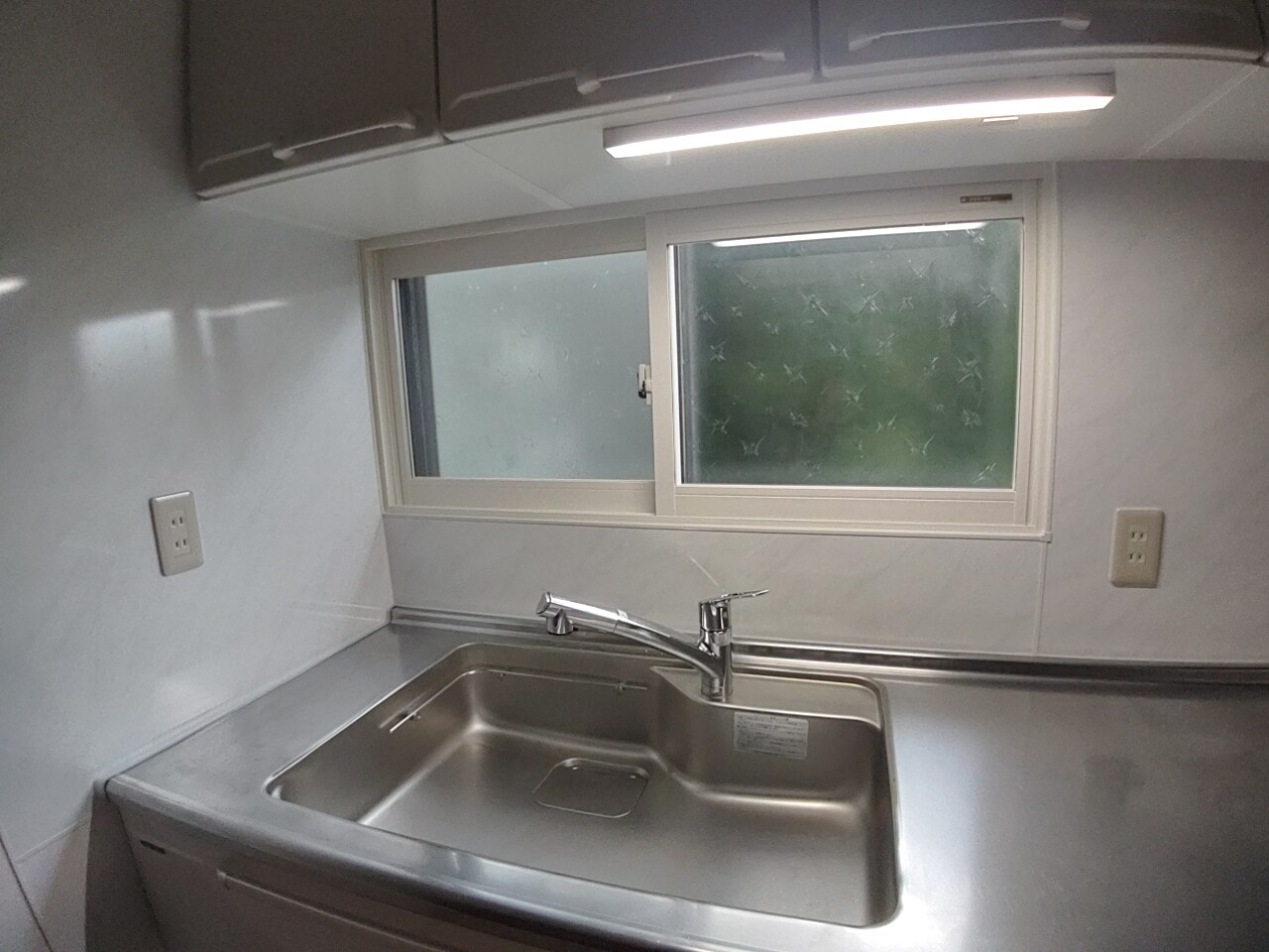 キッチンの色味に合わせ、白い枠の内窓を設置しました。 |