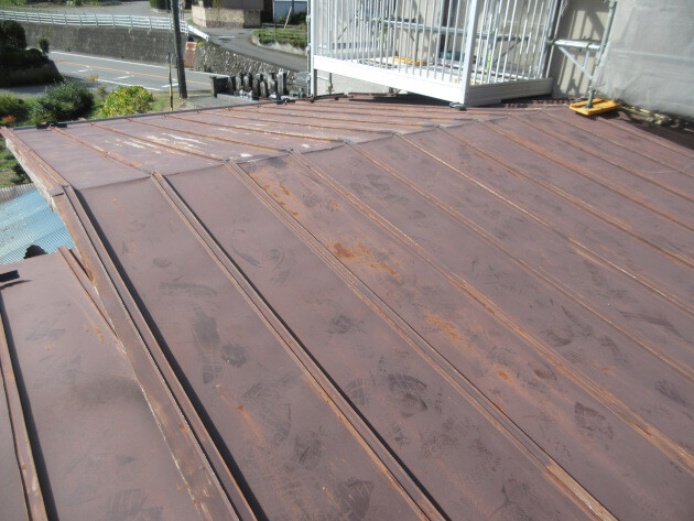 施工前の屋根は、経年劣化による色あせやサビが目立ち始めていました。 |
