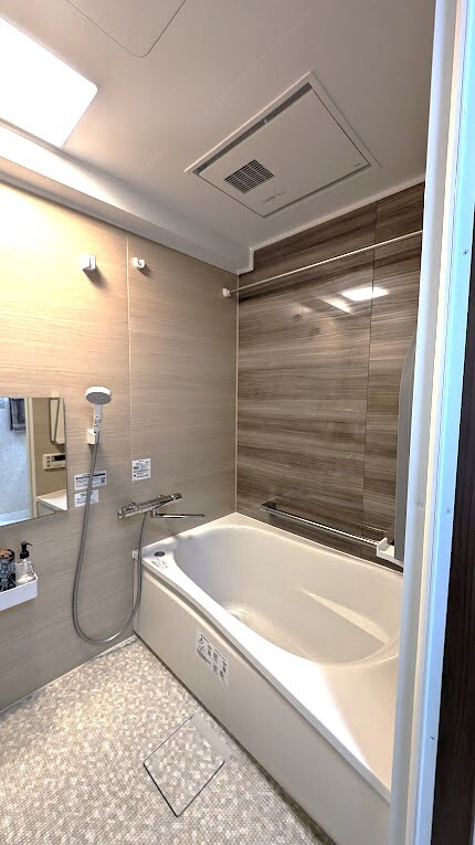 バスルームも新しくなり、一日の疲れをとるのに最適な空間に。将来に備え、手すりも採用しました。