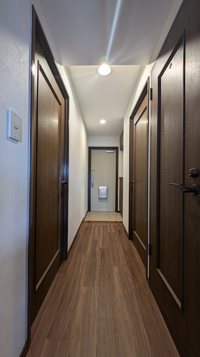 LEDに変えるだけで暗くなりがちなマンション廊下も明るくなり、それだけで雰囲気が変わります。