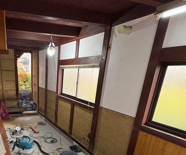 使われていなかった作業場を活かして浴室と脱衣室を新設し、用途が変わることで生じる構造や寒さ・温度差の課題にも向き合いながら、見えない部分まで丁寧に整えています。