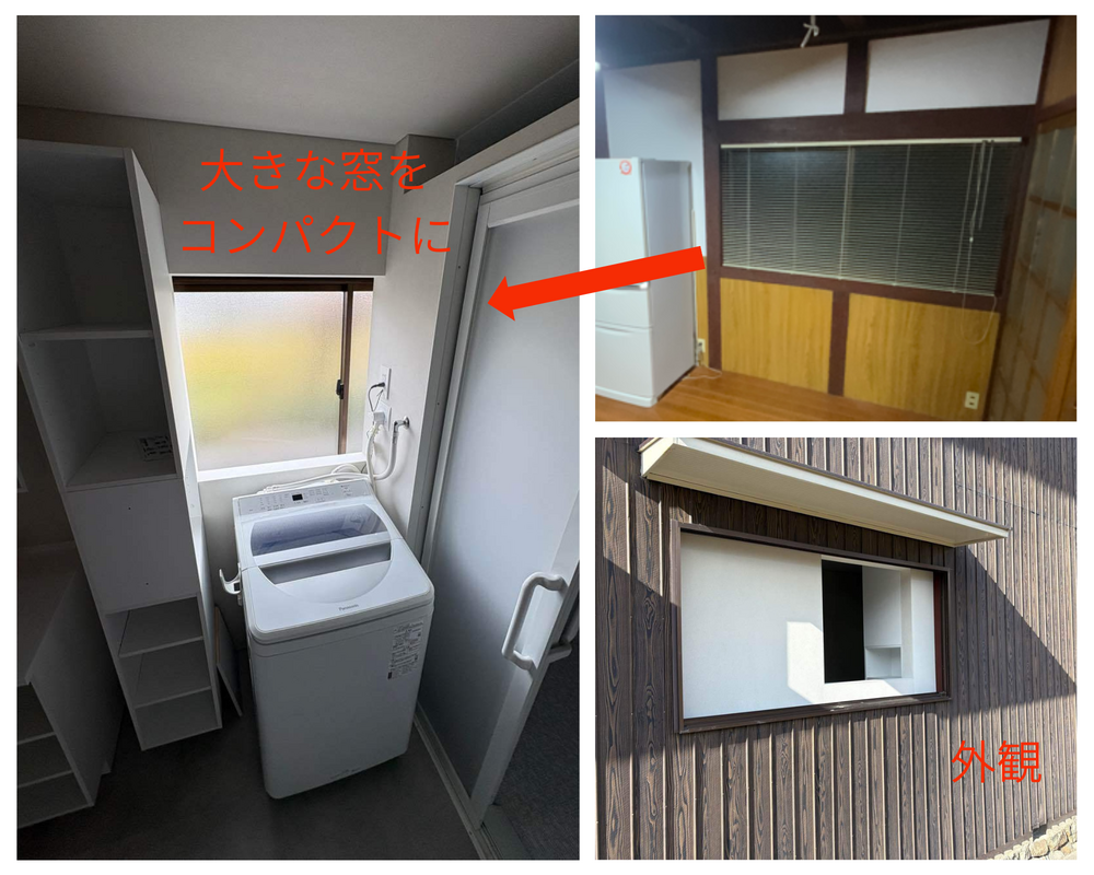 もともとは写真のとおり、洗面スペースにそのまま窓が設けられており、外部の影響を受けやすい状態でした。