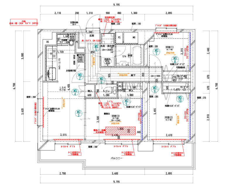 ・2つの子供部屋(洋室1と洋室2)を同じ広さにするために、廊下も含めた間取り変更プランを何度もつくり打ち合わせを重ねたが、一番良い形として、現在の間取りを活かし、収納スペースのつくり方で広さを揃えるプランでご納得いただいた。