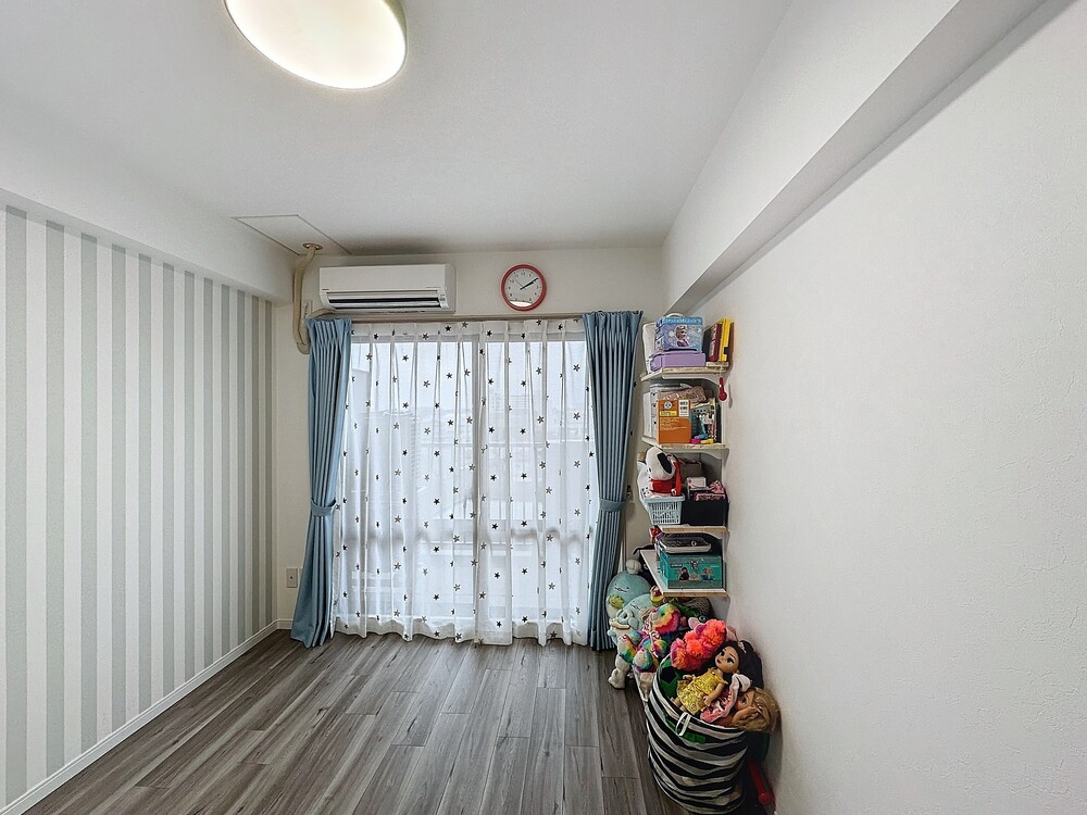 お嬢様たちのお部屋。ストライプのアクセントクロスが爽やかです。