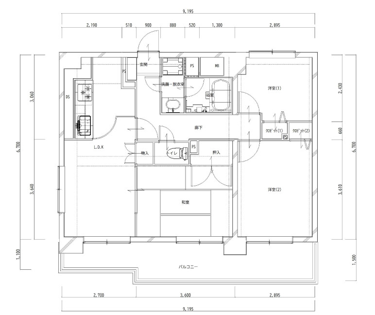現状をいかした間取りで、収納スペースのつくり方で広さのバランスを調整しました。