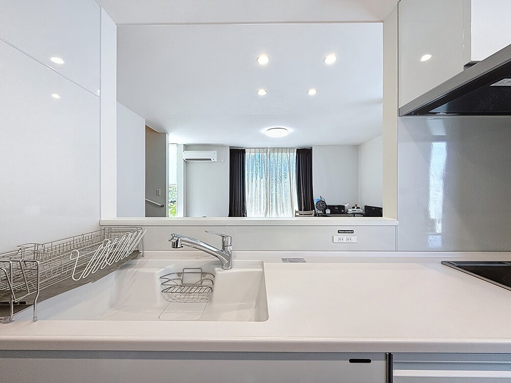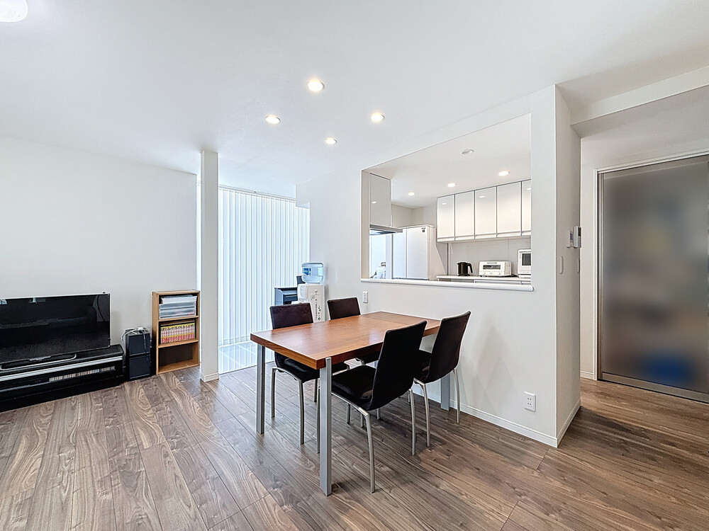 正面の壁を開口し、キッチンからリビングダイニングが見渡せるようになりました。