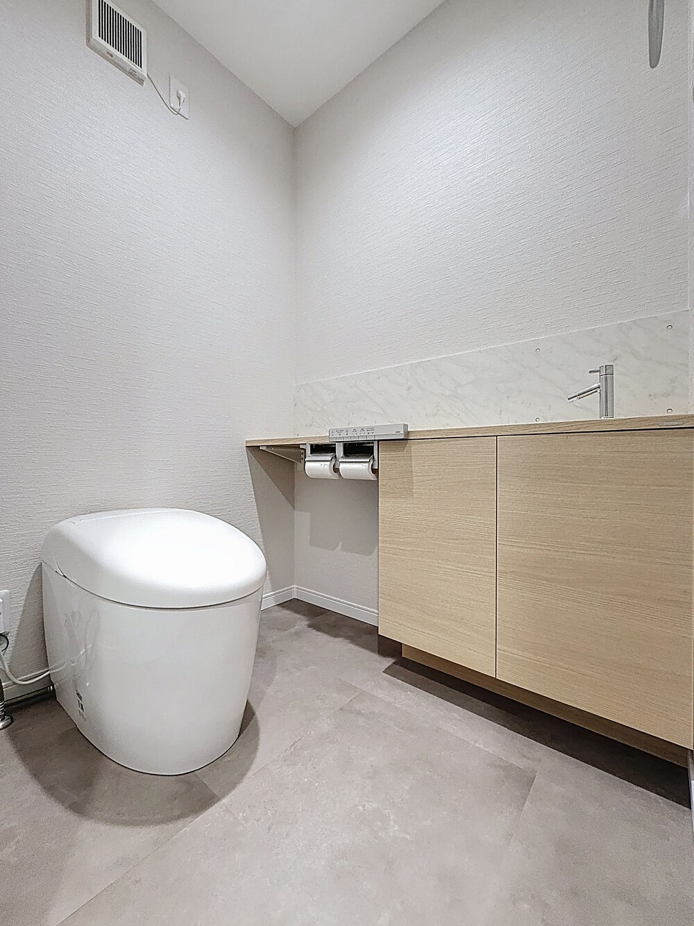 洗面・トイレ・浴室は配置を変更し、それぞれが広く使いやすくなりました。トイレは超節水型のタイプを採用。