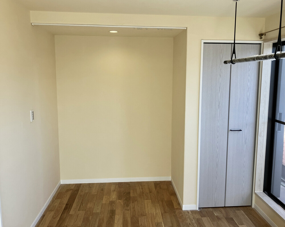 押し入れ2ヶ所は、天井を少し上げたオープンクローゼットと吊り戸付きのクローゼットに。フローリングを内側まで張ることができ「スッキリしました」と好評です。