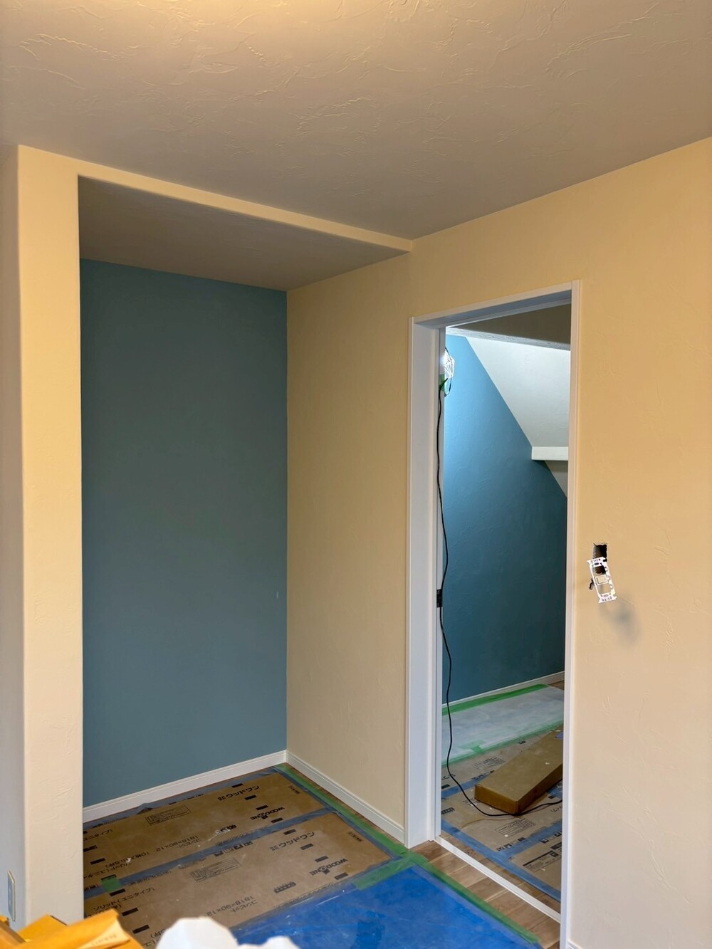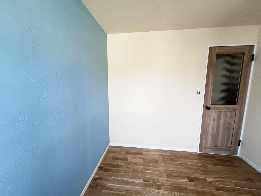 ・お子様の部屋をベージュ&アクセントブルー、寝室はベージュ&モスグリーンに塗り分け。