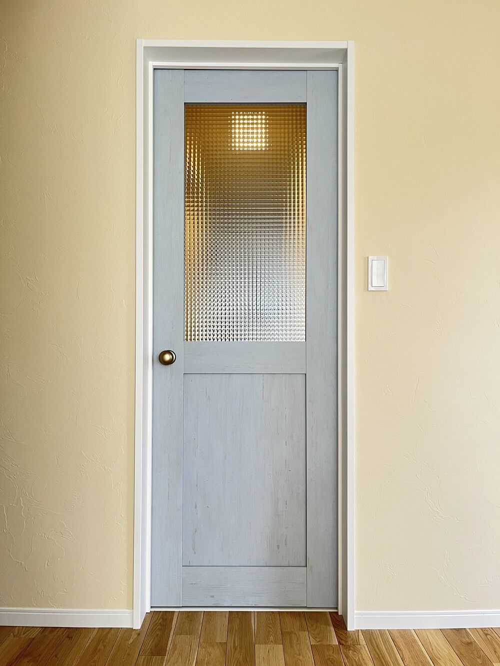 アンティーク調の室内扉。マットなブルーグレーが素敵です。