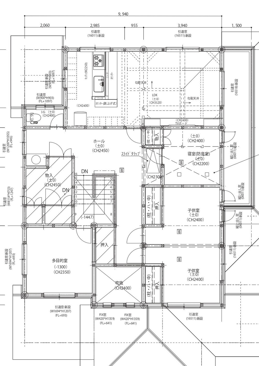 若年世帯がそれぞれの個室を持ちながらも集まりたくなるようなリビングダイニングキッチンにしました。料理をしていても孤立感がないようキッチンは対面式。お子さんはキッチンのカウンターを使って勉強することもできます。