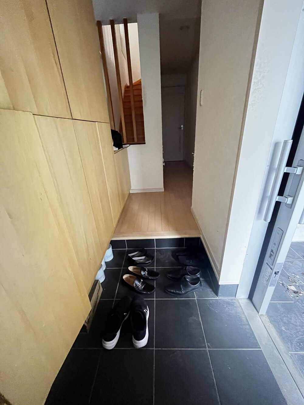 玄関は、使い勝手と、来客を迎える際の第一印象の良さ、限られたスペースをどれだけ有効活用できるかにもこだわりました。収納棚も使いやすい位置に移動でき、特にベビーカーをスムーズに出し入れできるようになりました。