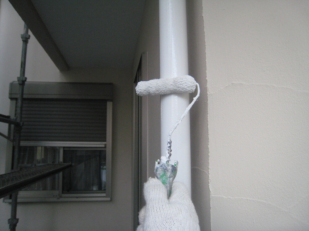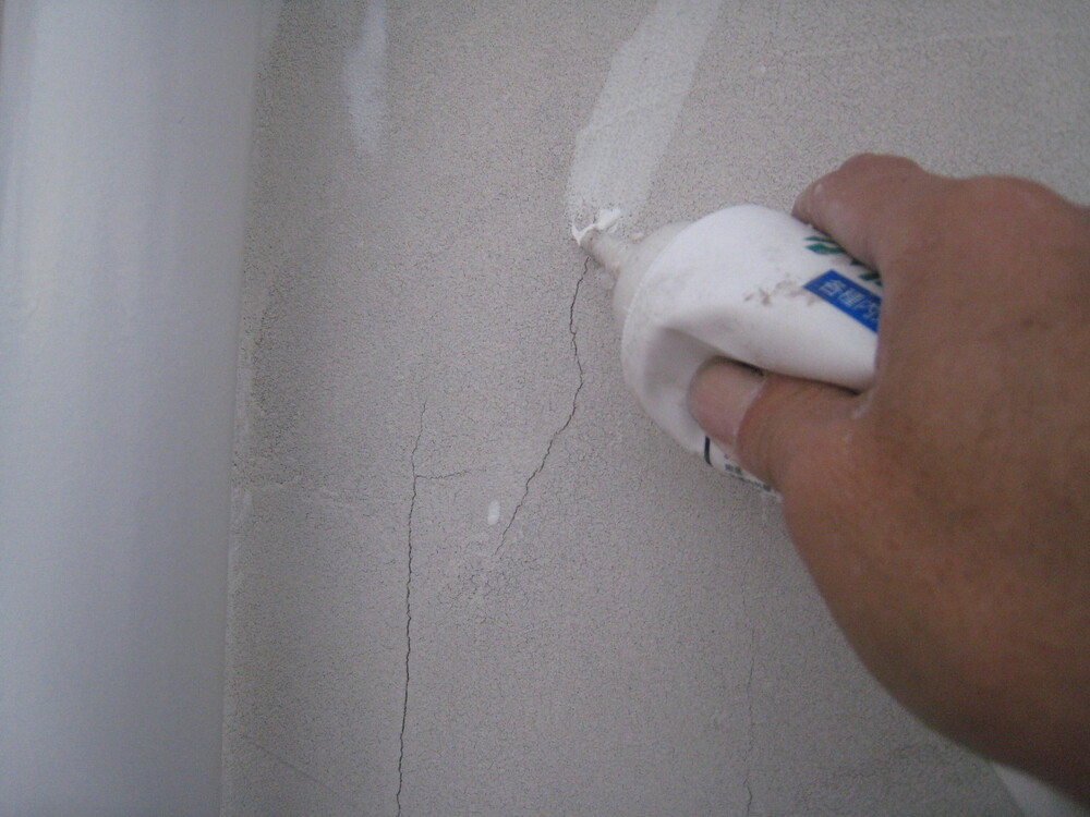 塗装前に、ひび割れを補修し、下塗り材を含め4回塗装しました。