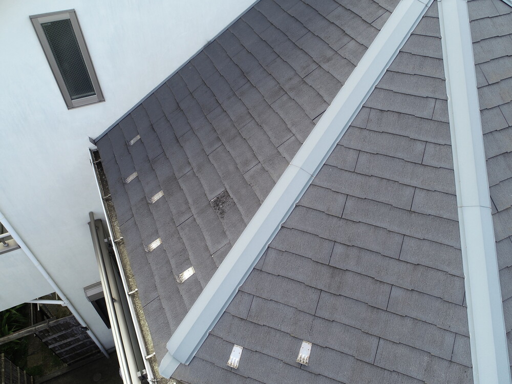 現場調査では、ドローンを使って屋根の状態を確認しました。