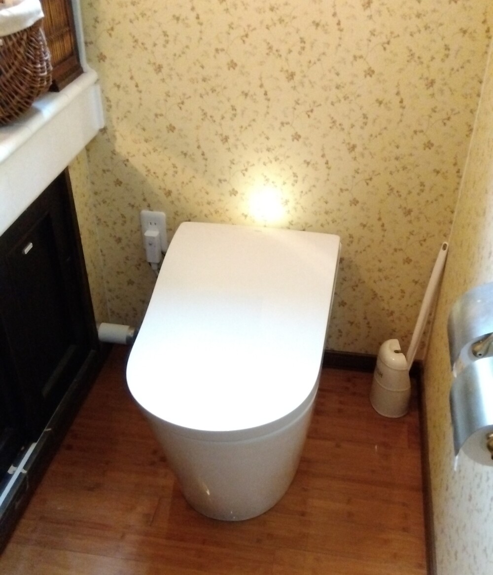 既存トイレと同等品の「ネオレストLS」を選定。本体の後方にある「やわらかライト」がトイレ室内を優しく照らしており、夜間にも安心して使用できます。