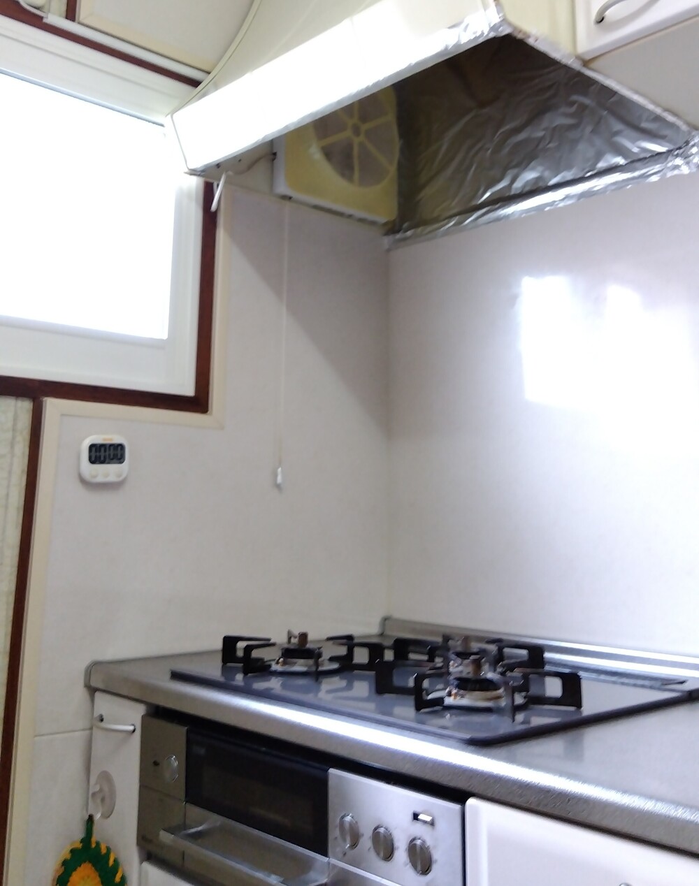 ガスコンロからIHヒーターに交換し安全面に配慮しました。レンジフードは油汚れに強くお掃除しやすい「ホーロー素材」が特長です。フードを構成するパーツはそれぞれ簡単に取り外せ手軽にお手入れできます。