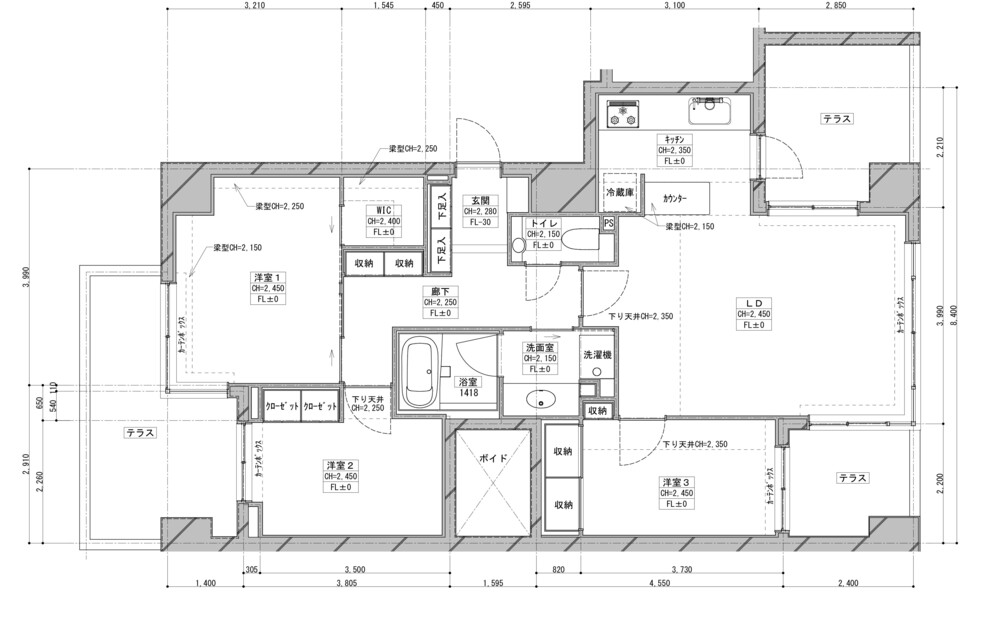リビングの下がり天井に飾り板を設けることで、空間に奥行きとデザイン性を加えました 。