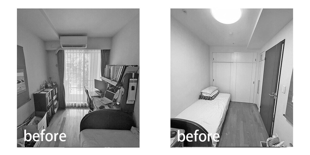 窓には障子ではなく、採光調整と目隠しが両立できるプリーツスクリーンをセレクト。既存のエアコンやカーテンボックスを活かしながら、モダンですっきりとした印象にまとめました 。