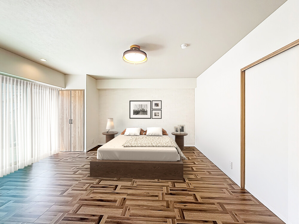 ・和室と洋室を一体的に改修し、寝室+ウォークインクローゼットとして回遊できる間取りに変更。