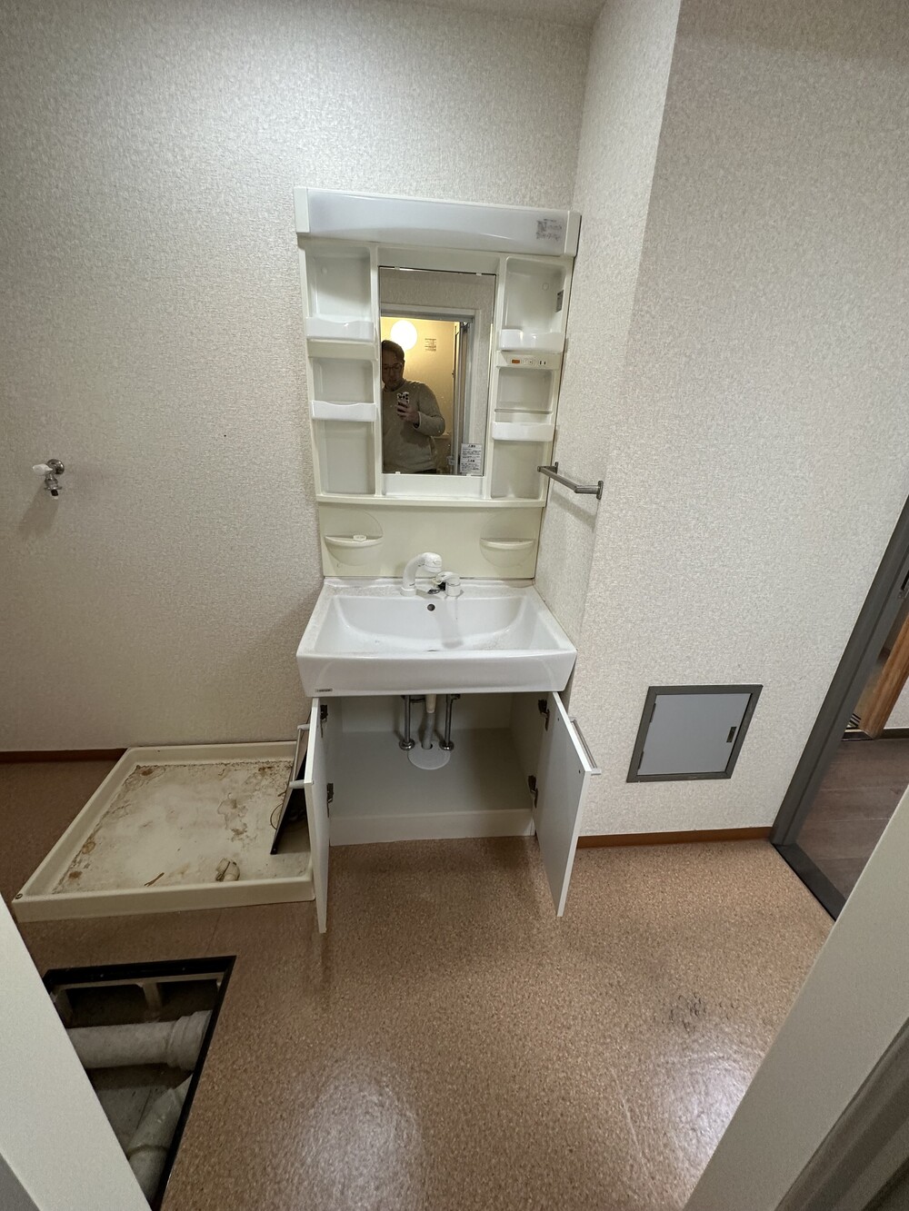 和室のあった場所を改修し、広い洗面空間を実現。