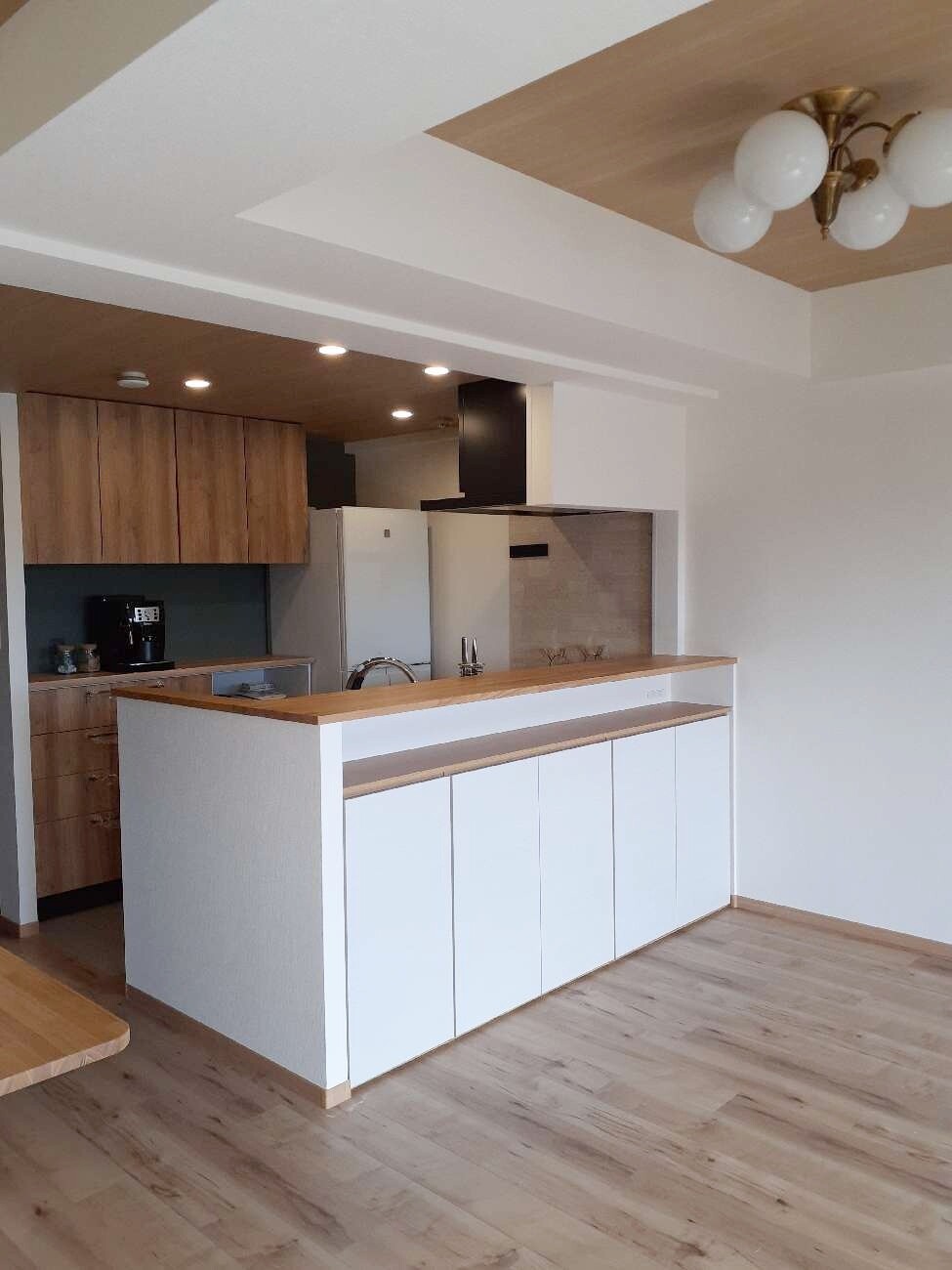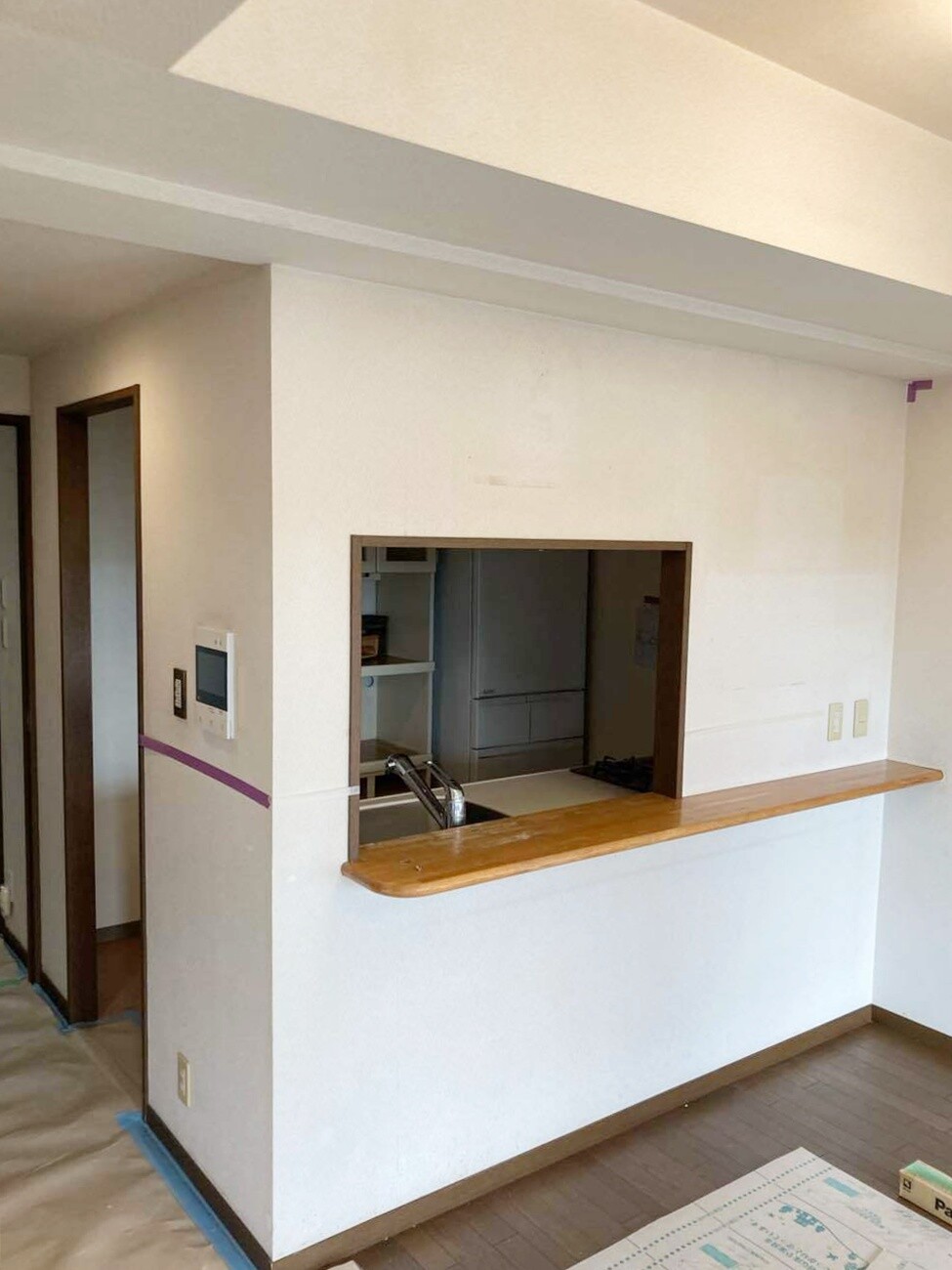 キッチンの吊り戸を撤去、リビングと繋げたことで