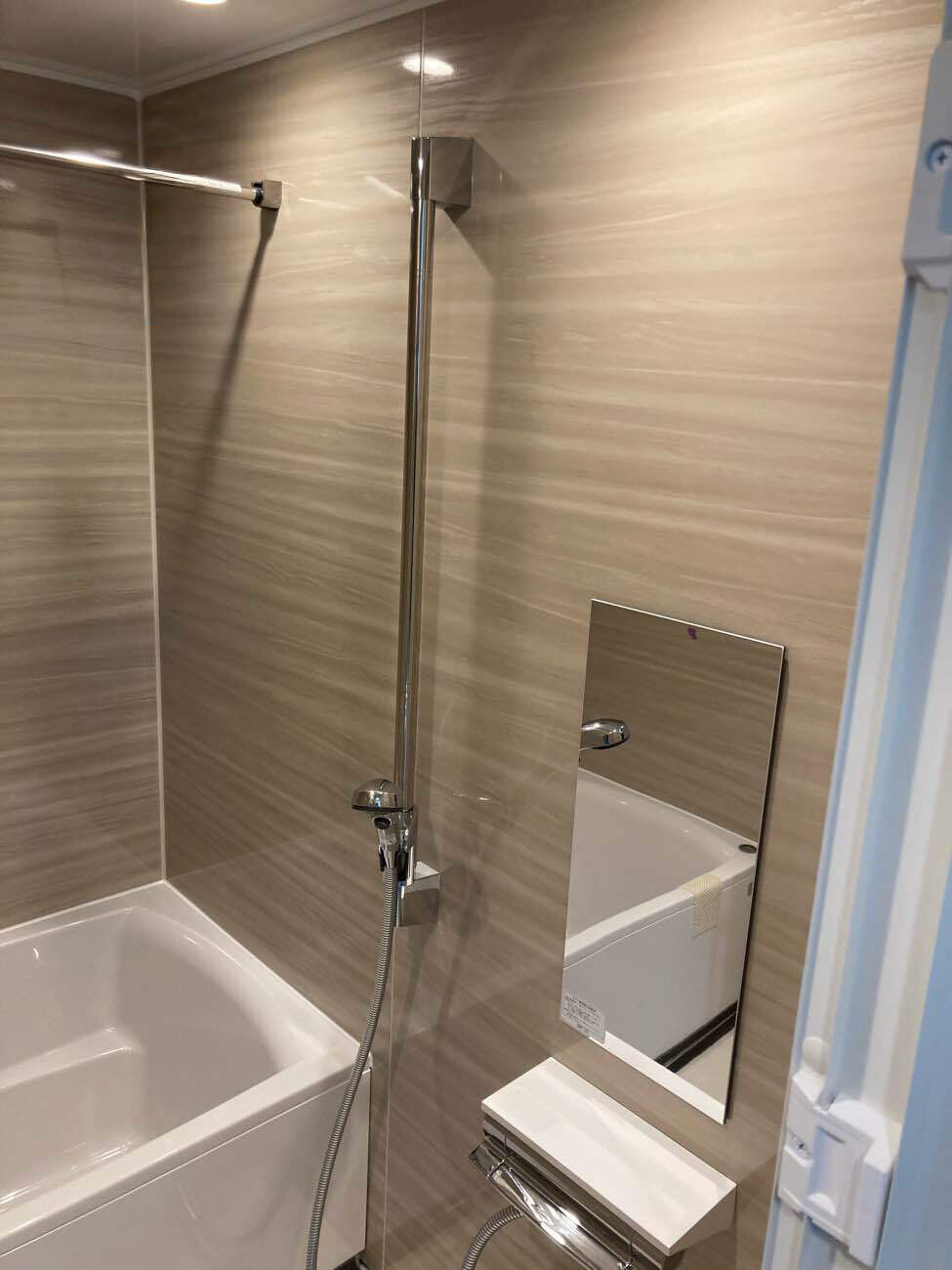 木目調の壁パネルは温かみがあり心からリラックスできる浴室に。
