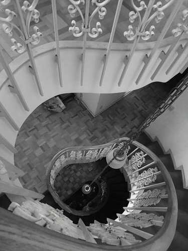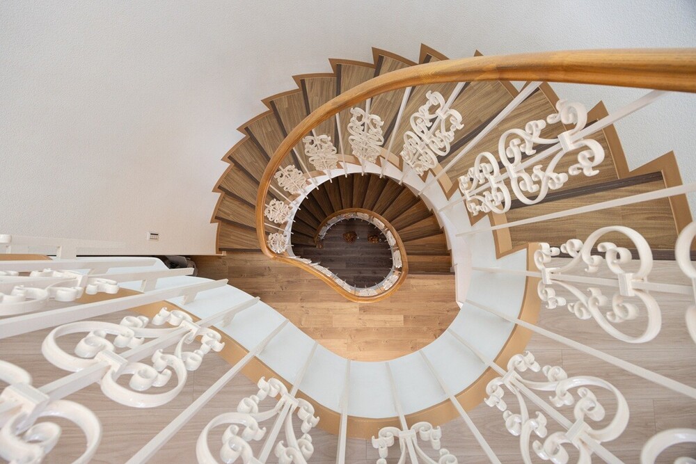 手すり部は塗装、階段の踏面は床と同タイプの上貼り