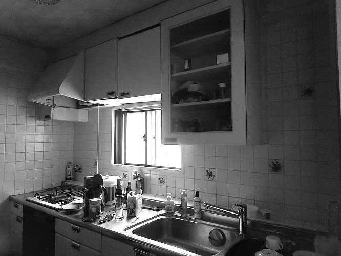 間仕切り壁に食器棚でしたので、キッチンにいると