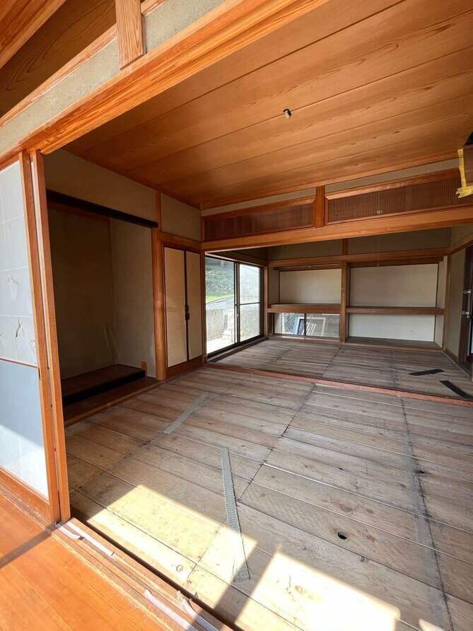 広縁と続き間和室をインナーガレージへ改修。天井高3600mm確保のため床を掘り下げ、既存基礎に新設基礎を抱かせる構造とした。リフト・照明・空調・換気・洗い場を完備し、本格的な整備環境を実現。バイクスペースは10㎡以内で増築し、室内には将来の猫ちゃんスペースを計画。猫スペースの建具は引き渡し後にお施主様がガレージでDIY製作し、家族の趣味と成長を支える空間とした。