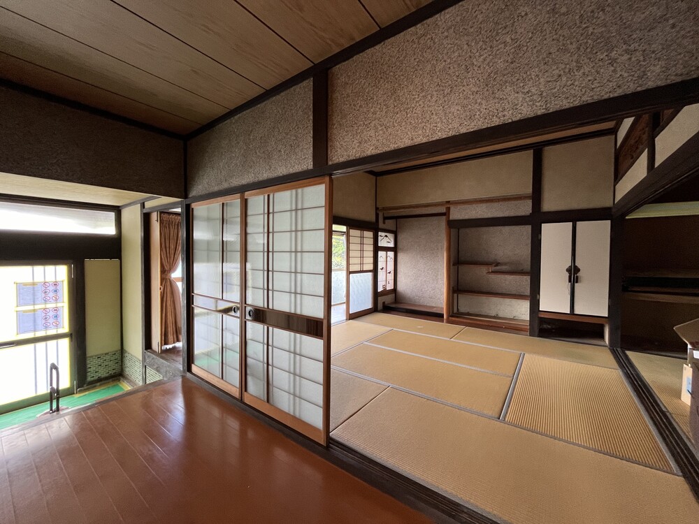 元の広縁・廊下・和室を一体化し、家族が自然と集まれる広々としたLDKに。どこにいてもお互いの気配を感じながら、程よい距離感を保てる空間となり、会話や団らんも生まれやすくなった。バリアフリー化により、お父様も安心して一緒に過ごせるようになったことも大きな変化。既存の広縁は全面窓だったが、耐震補強と断熱工事を施したことで、夏はエアコンの効きが良く、冬はペレットストーブで暖かく、一年を通して快適に。家族みんなが心地よく集えるリビング空間へと生まれ変わった。