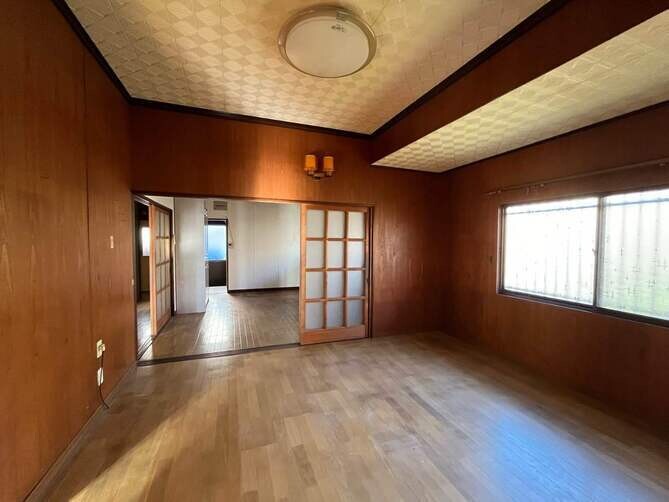 キッチンからLD全体を見渡せる配置とし、家族の会話が自然に生まれるLDKへ再編。広々とした空間と回遊動線により、多世代が集ってもゆったりと過ごせる。