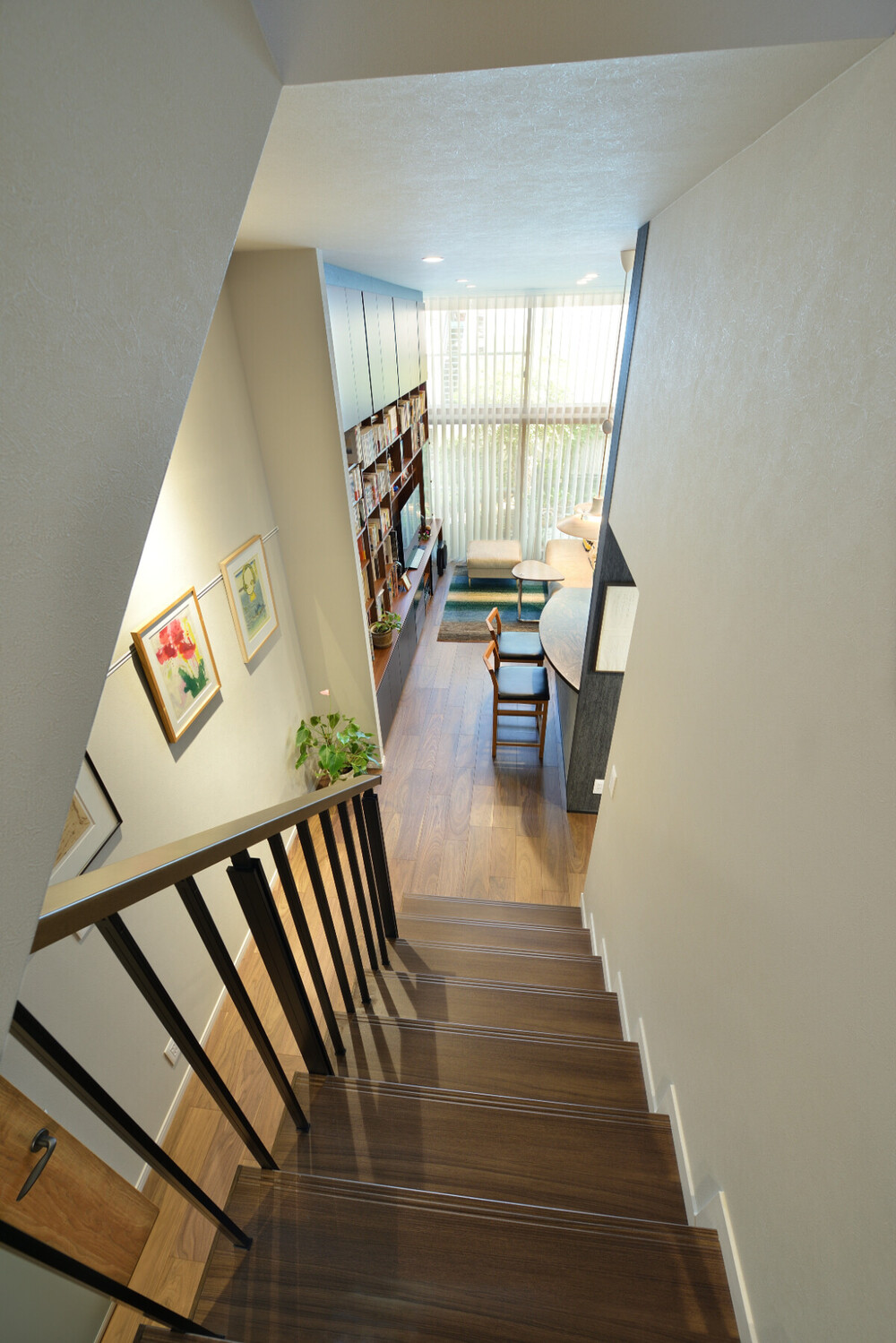 友人の建築家が設計したご実家を住み継ぐことになったEさま。急勾配の階段や手狭な水廻りを一新して、アート・本・音楽など、お二人が大切にされているものを楽しむ快適空間へとリノベーションしました。デザイン性と機能性が溶け合う、アイデア満載の住まいです。