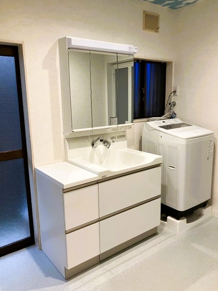 洗面脱衣所も同時に改修し、バリアフリーで使いやすく、心地よい空間に生まれ変わりました。