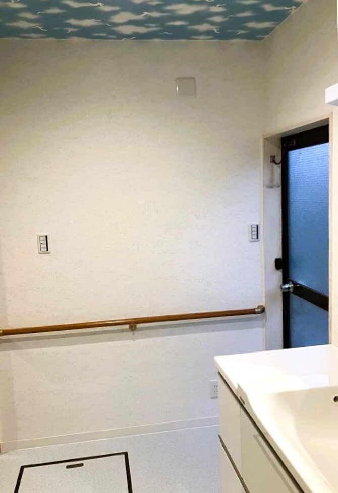 チラリと見える天井は、アクセントとなる雲の柄です。