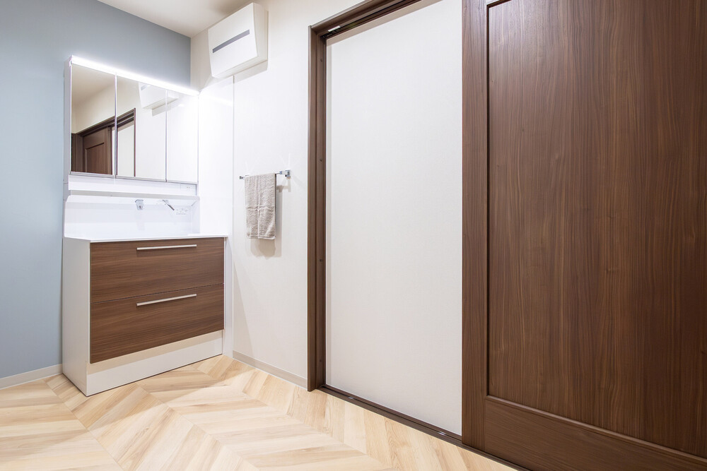 浴室同様、土間にあった洗面化粧台は居住スペースへ移動。