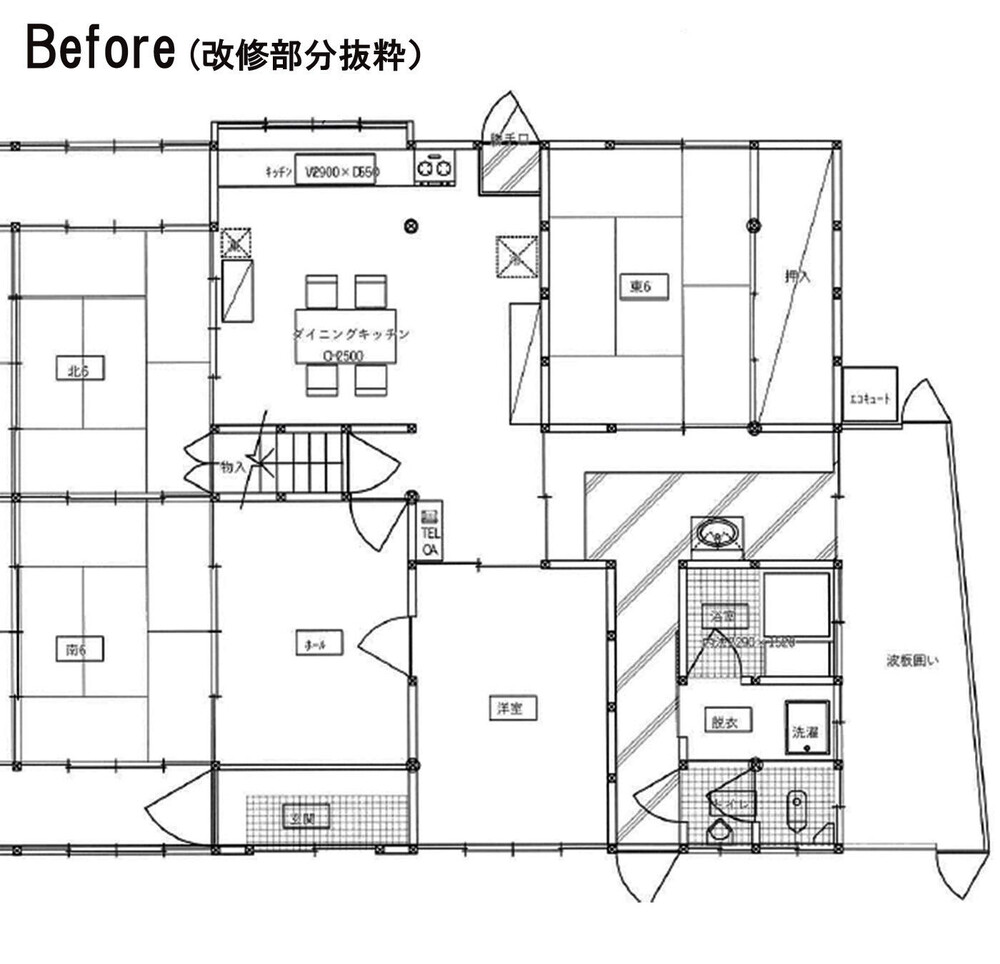 ダイニングを中心に間取りを大胆に見直し、家全体の動線を再設計。