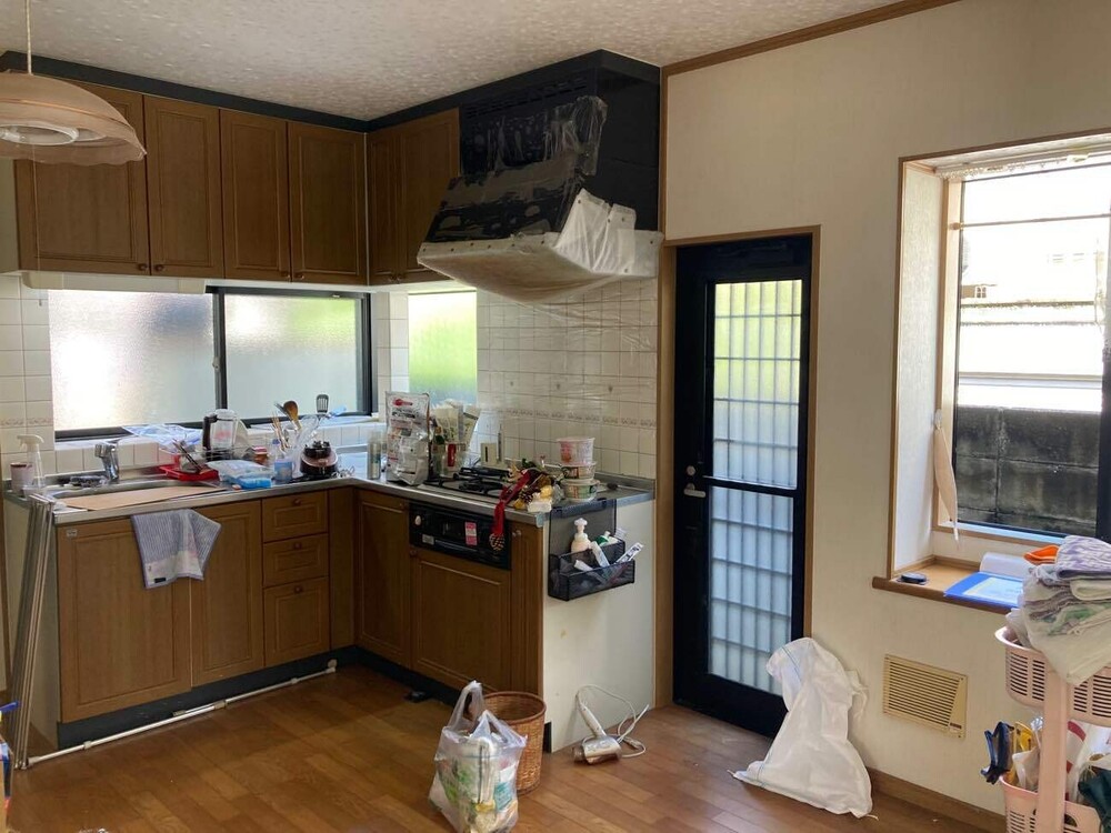 北西の角にあったL型キッチン→北東に移設し開放的な対面キッチンに