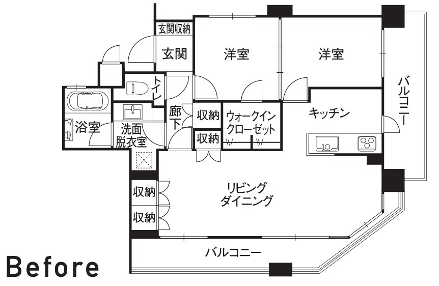 ・洗面室をLDKから入れるようにし、壁のラインを少し変更することでリビングを広くした