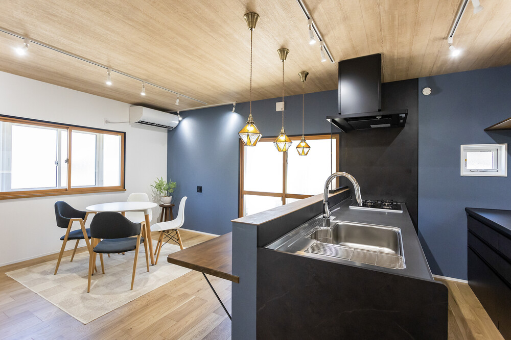 和室・台所・縁側をつなぎ、11.5帖だった空間を14帖のLDKへ拡張しました。対面キッチンにはカウンターを設け、調理・配膳・片付けがしやすい動線を確保。収納力も高め、生活感を抑えながらすっきりとした空間に仕上げています。家族が自然と集まり、会話が生まれるLDKを実現しました。
