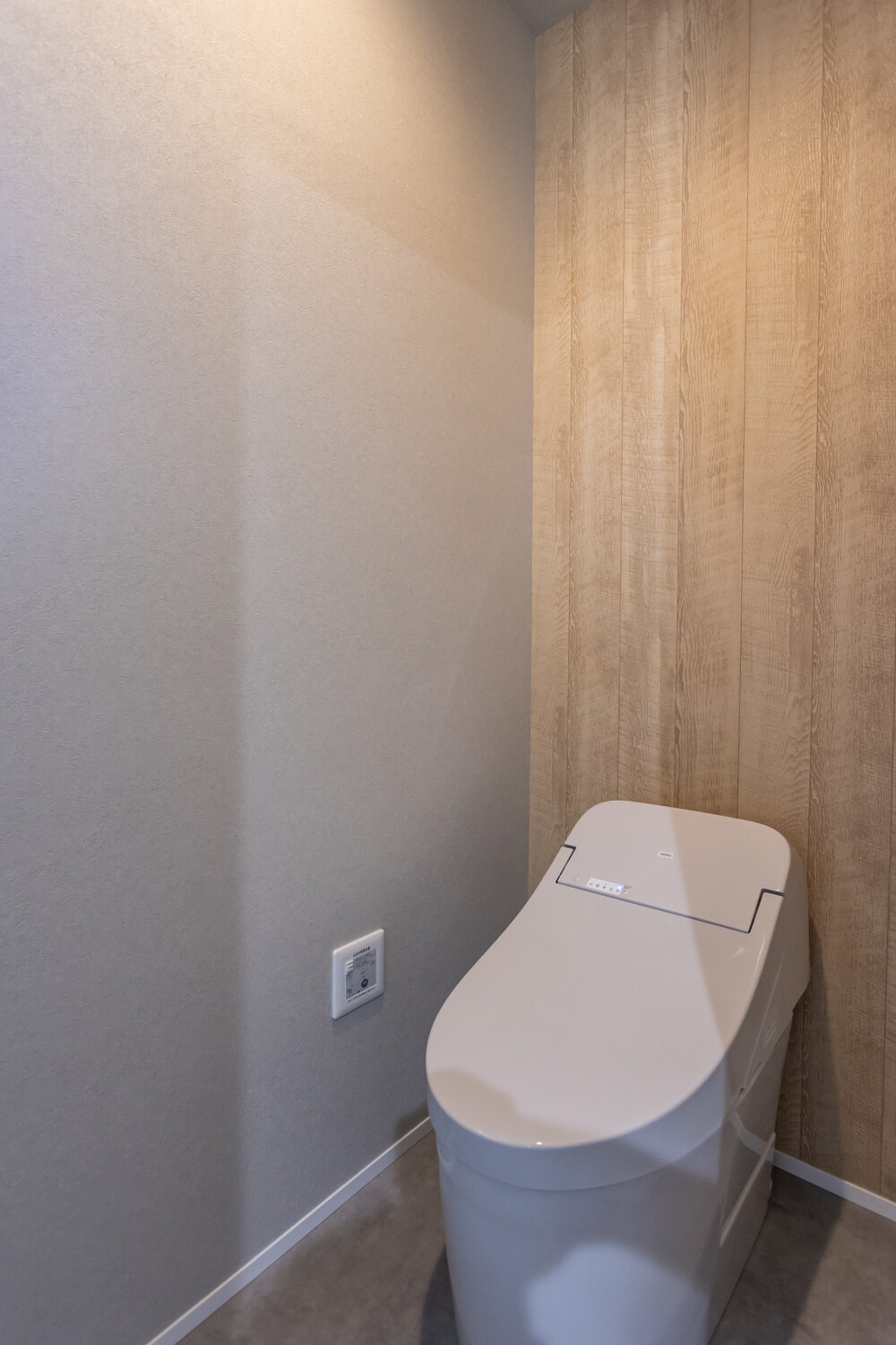 トイレは水まわり全体の動線を考慮した位置に配置し、使いやすさを向上させました。設備を一新し、清掃性にも配慮。コンパクトながらも圧迫感のない、落ち着いたトイレ空間に仕上げています。