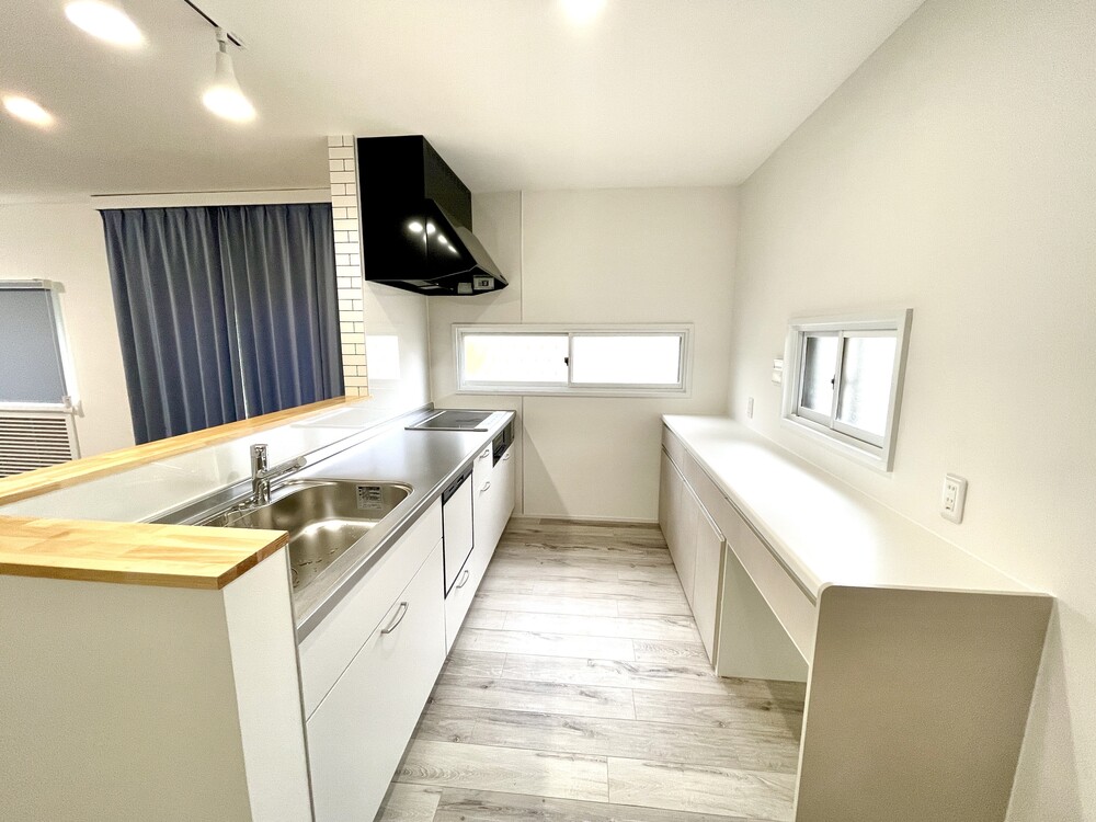 キッチンは設備を新しく入れ替え、使い勝手と清掃性を向上させました。内装とのカラーコーディネートにも配慮し、LDK全体と調和するデザインに。毎日の家事が気持ちよく行える空間となっています。