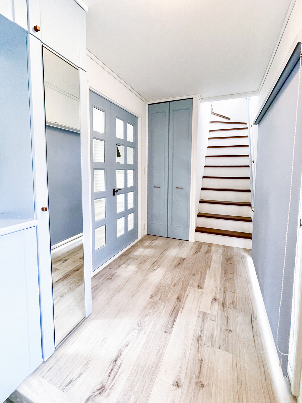 玄関ホールや階段、2階の洋室もクロス張替えや建具塗装を行い、住まい全体の統一感を演出しました。細部まで手を入れることで、家全体が明るく、まとまりのある印象に仕上がっています。