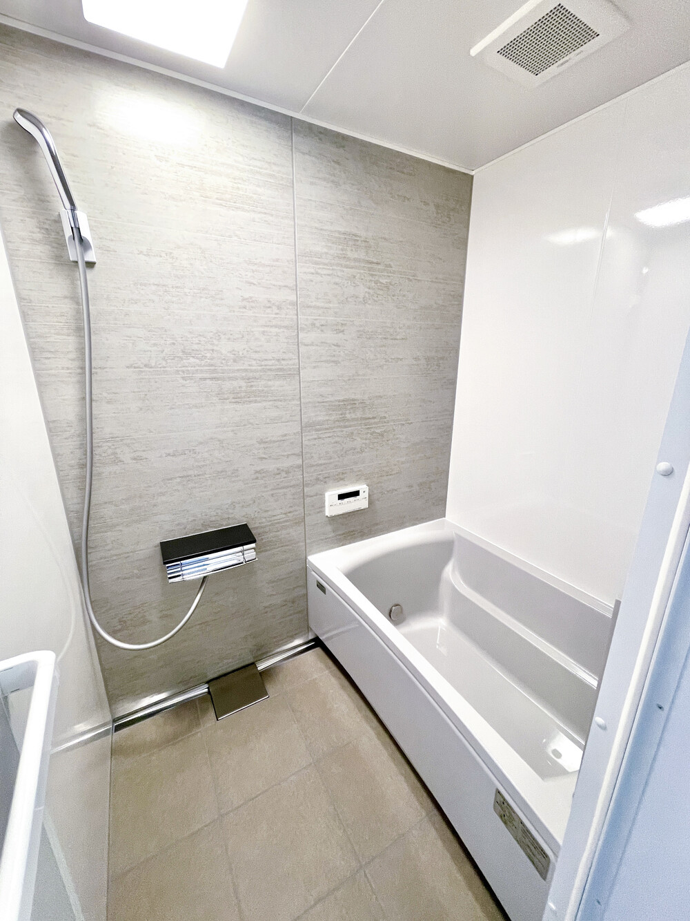 浴室はユニットバスへ交換し、快適性と安心感を高めました。お手入れのしやすさにも配慮し、毎日の入浴が心地よい時間となるよう整えています。築年数を感じさせない、清潔感のある空間に生まれ変わりました。