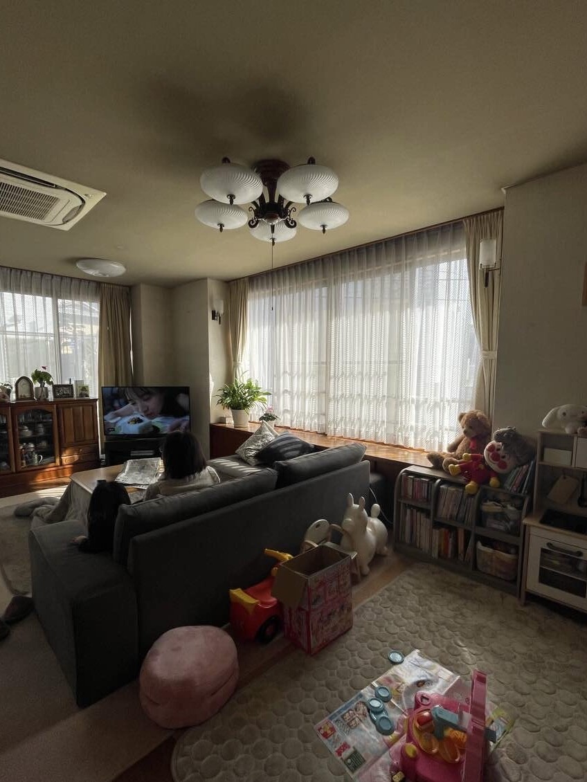 ⑤お子様が安心して過ごせる空間: お子様が寝転がって遊べるような、のびのびとした空間