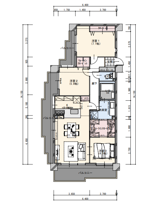 住戸の中央に約2.5帖以上の大きなWTCLを配置し、家族全員の衣類を集約して管理できるようにしました。