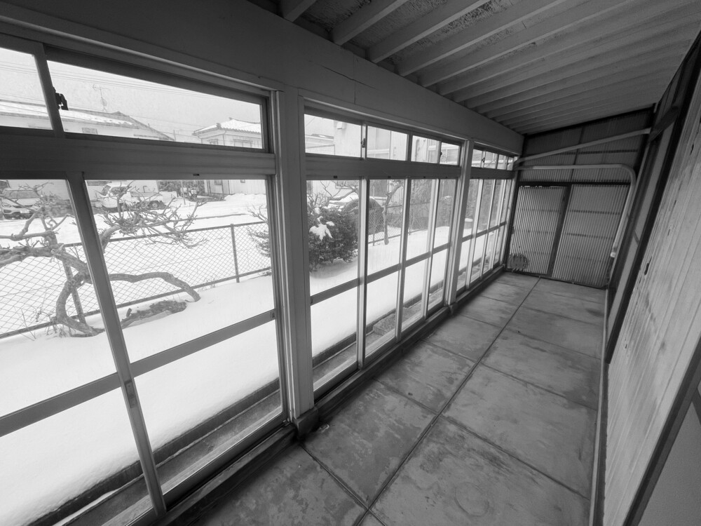 2階部分を減築し、平屋へ再構成することで建物全体のプロポーションを見直しました。屋根には耐久性に優れたライトグレーのガルバリウム鋼板を採用し、外壁は質感のあるリシン吹付仕上げとすることで、落ち着きのある佇まいに整えています。周辺環境との調和を図りながらも、素材の組み合わせにより現代的な印象を持たせ、減築後も違和感のない自然な外観へと再生しました。