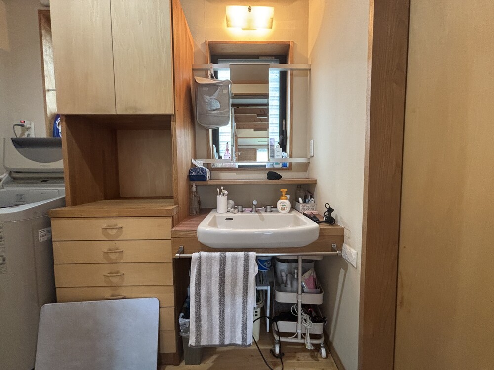 新築時の木製カウンター式洗面台は水が染みお手入れ大変でした