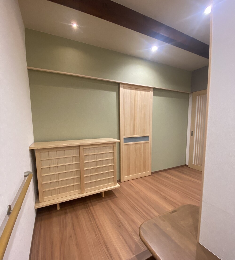 約2ヶ月の工期をかけ、歴史を刻む梁をあえて見せることで、伝統と現代性が調和した広々とした和モダン空間が完成しました。