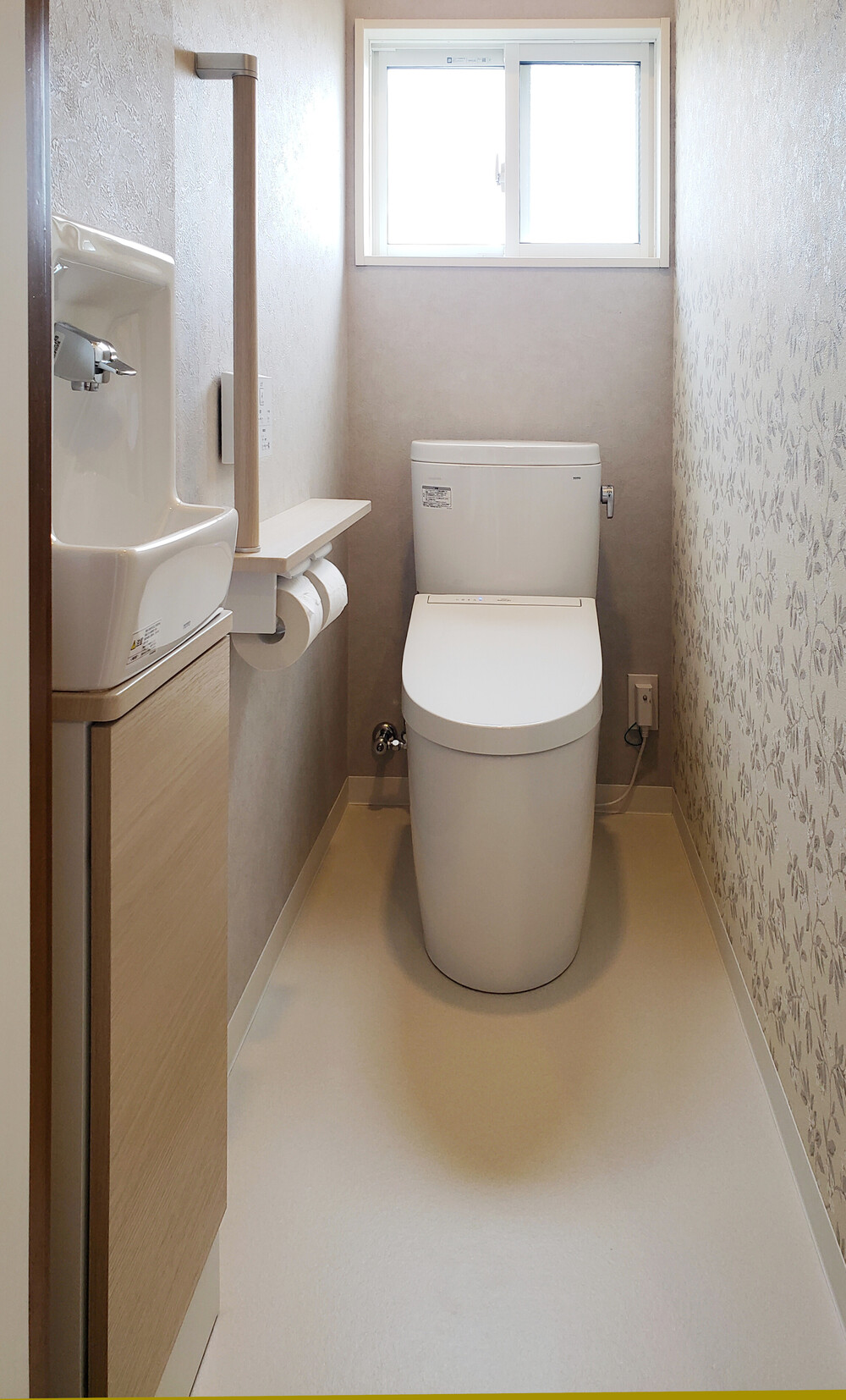 また、トイレ本体を節水型で清掃性に優れたTOTO「ピュアレストEX」へ取り替えることで、日常的な維持管理の負担軽減にも配慮しました。衛生的で快適に使用できるトイレ空間になりました。